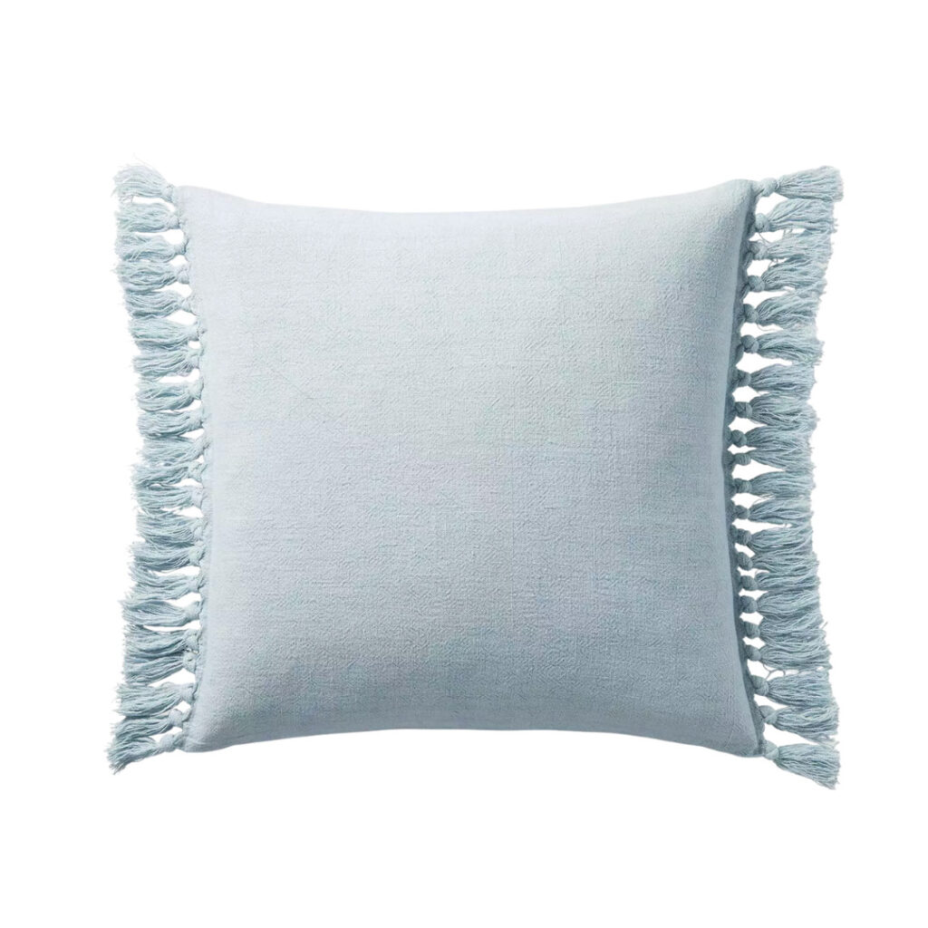 From the entryway to the finished basement, this home’s coastal palette is peaceful and serene and the sunken family room doesn’t disappoint. This sports loving family wanted a big TV room with a deep sectional to hang out but needed the room to stay pretty and compliment the rest of the home’s aesthetic. By adding a sectional, modular coffee table seating and a stain proof rug we answered their needs. We took it a step further by shiplapping yet another vaulted ceiling, and adding the texture of rattan in different areas of the space.